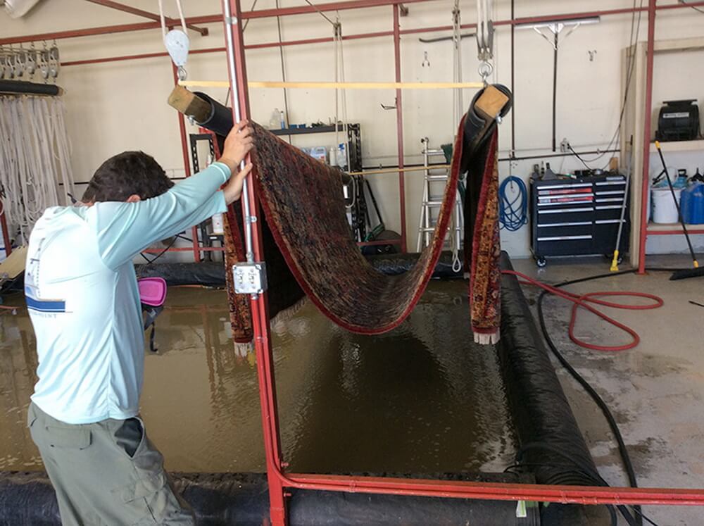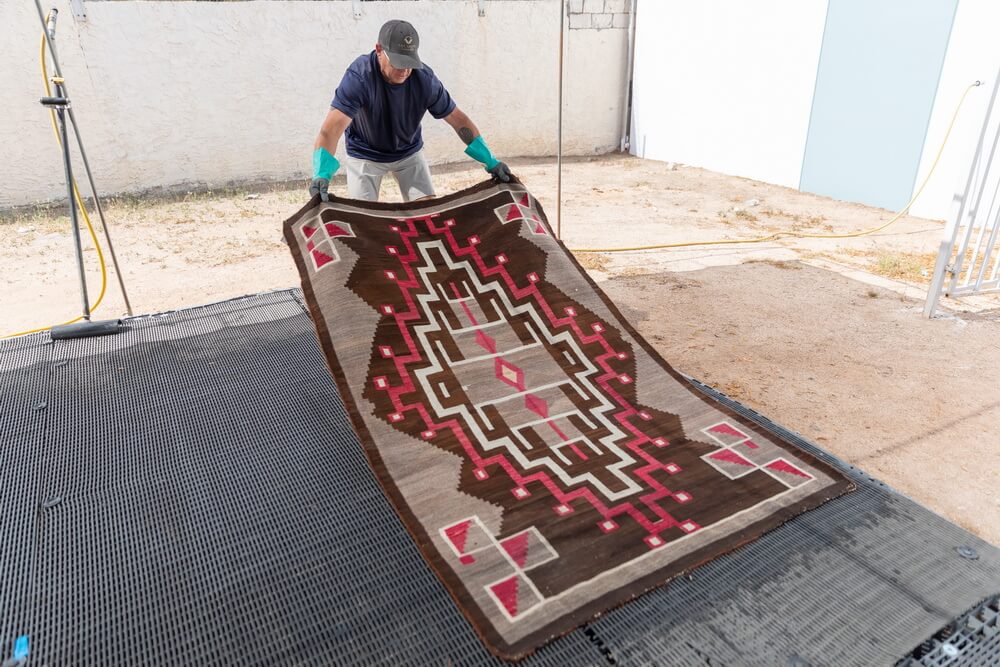 Each rug is carefully hand-washed in a fresh, soft water submersion bath.