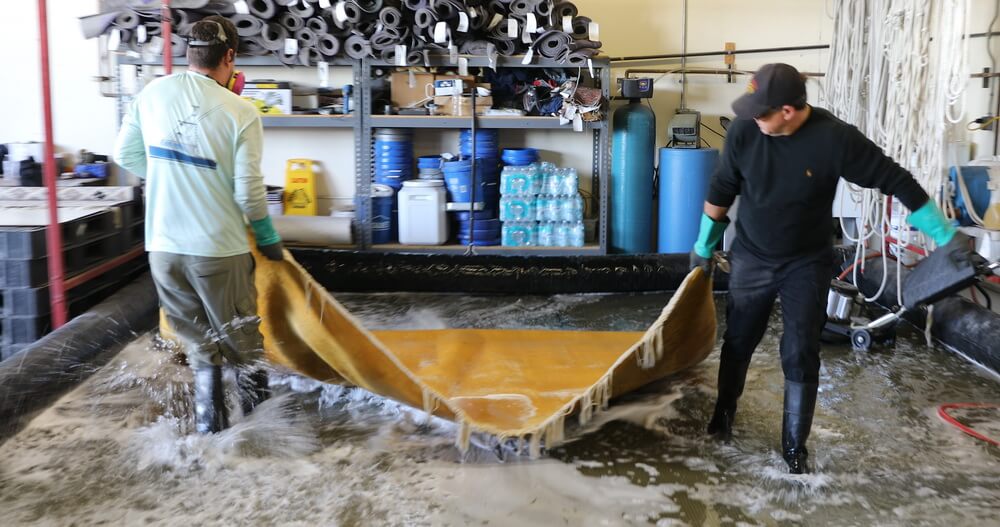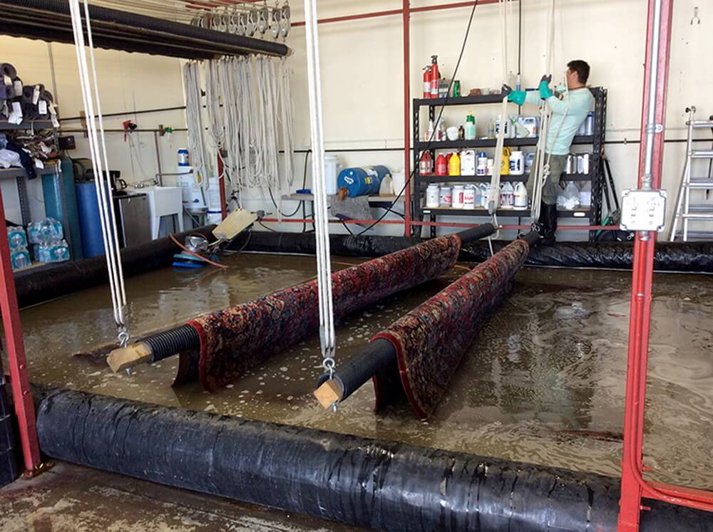 Our approach combines traditional craftsmanship with advanced technology. We use patented tools and equipment specifically designed for oriental rugs. Our unique system leverages air, water, detergent, and agitation to provide a deep, structural wash for both natural and synthetic fibers. Our 16-foot wide, 20-foot long wash pit features four separate inflatable chambers, allowing us to wash rugs in 500 gallons of fresh, soft water. The special diamond wash grid elevates rugs, preventing contact with separated debris. This system offers greater flexibility for rolling, flexing, and purging soil from your rug.